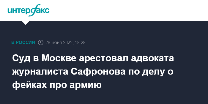 Суд в Москве арестовал адвоката журналиста Сафронова по делу о фейках про армию