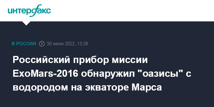 Российский прибор миссии ExoMars-2016 обнаружил "оазисы" с водородом на экваторе Марса