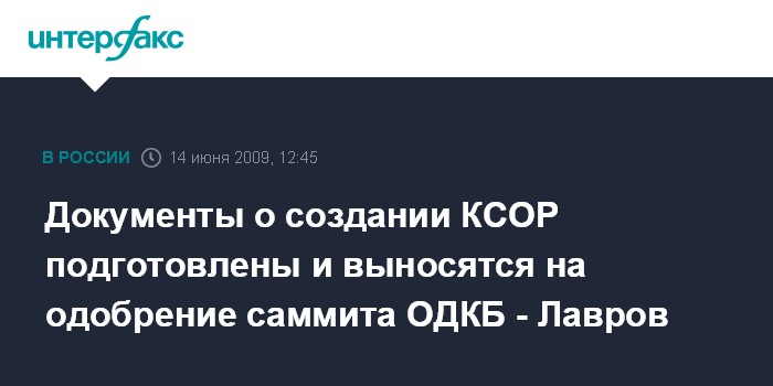 Москва. 14 июня. INTERFAX.RU - Главы МИД стран ОДКБ подготовили документы, необходимые для создания Коллективных сил оперативного реагирования (КСОР).
