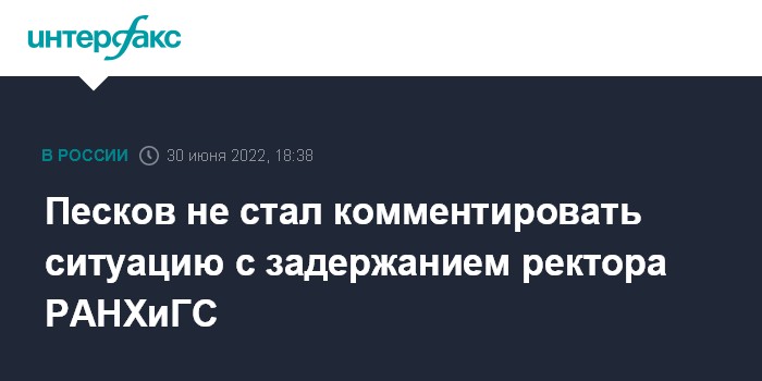 Песков не стал комментировать ситуацию с задержанием ректора РАНХиГС