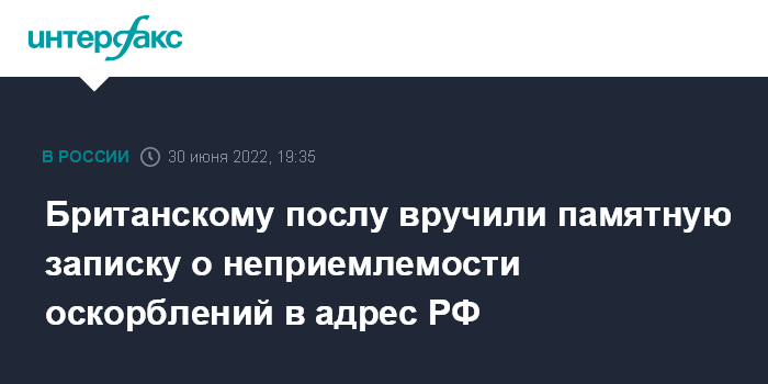 Британскому послу вручили памятную записку о неприемлемости оскорблений в адрес РФ