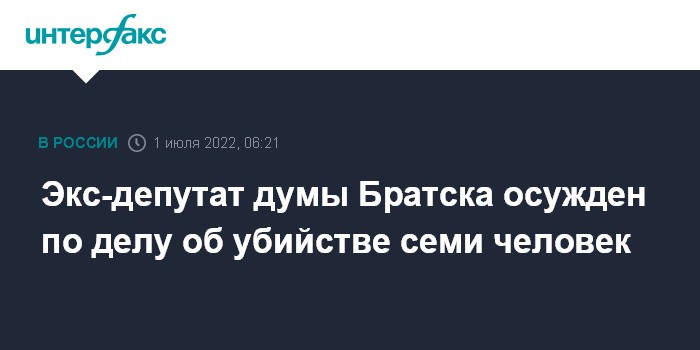 "В Иркутской области вынесен приговор лидеру и участникам преступной группы, совершившим убийство семи человек. (...) Накануне суд присяжных вынес вердикт о виновности подсудимых", - говорится в сообщении.