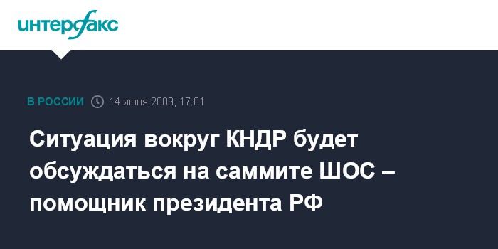 Москва. 14 июня. INTERFAX.RU - На саммите ШОС в Екатеринбурге 15-16 июня будут затронуты вопросы, связанные с ситуацией вокруг Северной Кореи, сообщил в воскресенье журналистам помощник президента РФ Сергей Приходько.