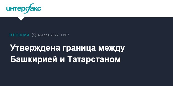Москва. 4 июля. INTERFAX.RU - Утверждена граница между Башкирией и Татарстаном, сообщил через пресс-службу регионального парламента спикер Госсобрания-Курултая Республики Башкортостан Константин Толкачев.