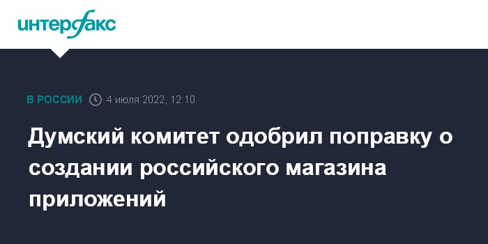Москва. 4 июля. INTERFAX.RU - Комитет Госдумы по информационной политике, информационным технологиям и связи в понедельник одобрил поправку о создании отечественного магазина приложений.