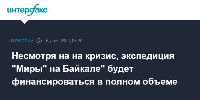 Несмотря на на кризис, экспедиция "Миры" на Байкале" будет финансироваться в полном объеме