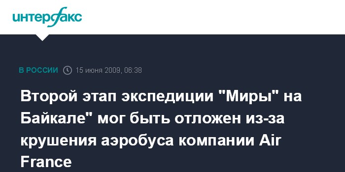 Второй этап экспедиции "Миры" на Байкале" мог быть отложен из-за крушения аэробуса компании Air France