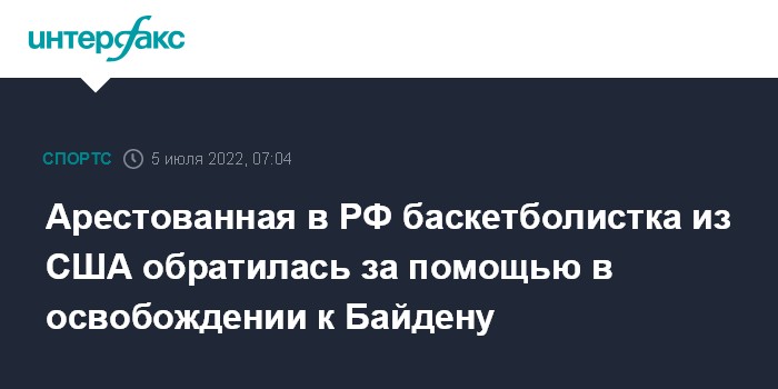 Москва. 5 июля. INTERFAX.RU - Американская баскетболистка Бриттни Грайнер, арестованная в России по обвинению в контрабанде наркотиков, обратилась к президенту США Джо Байдену с письмом, в котором просит оказать помощь в освобождении и возвращении на родину, сообщают СМИ.