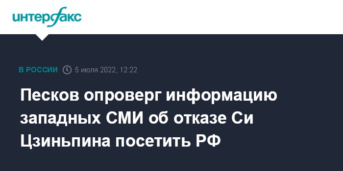 Песков опроверг информацию западных СМИ об отказе Си Цзиньпина посетить РФ