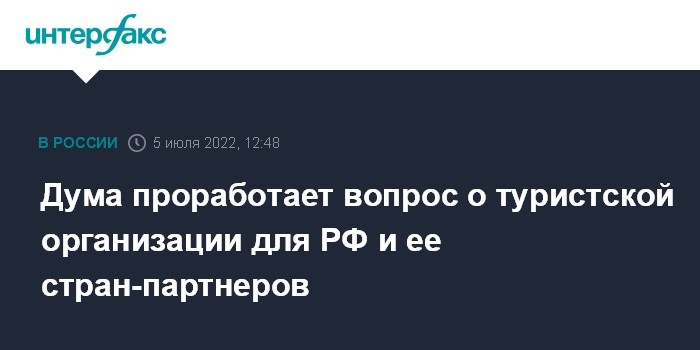 Москва. 5 июля. INTERFAX.RU - Комитет Госдумы по туризму инициировал создание Российской туристской организации после выхода из Всемирной туристской организации, которая может объединить и зарубежные страны-партнеры.