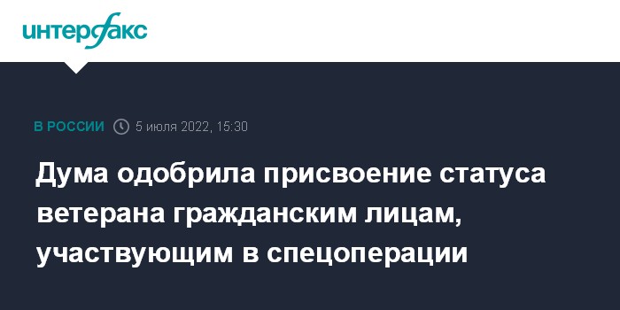 Дума одобрила присвоение статуса ветерана гражданским лицам, участвующим в спецоперации