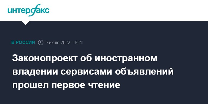 Законопроект об иностранном владении сервисами объявлений прошел первое чтение