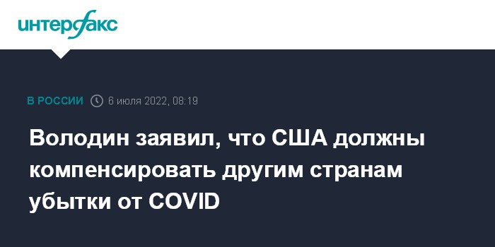 Володин заявил, что США должны компенсировать другим странам убытки от COVID