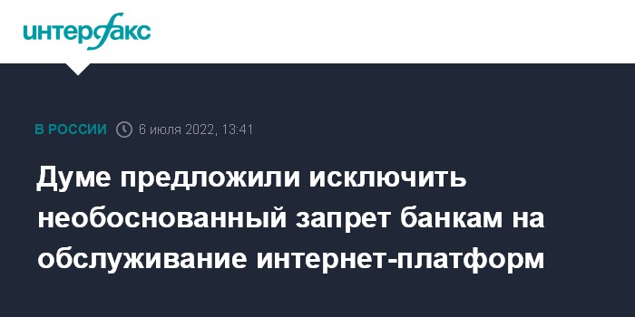 Думе предложили исключить необоснованный запрет банкам на обслуживание интернет-платформ