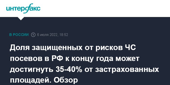 Доля защищенных от рисков ЧС посевов в РФ к концу года может достигнуть 35-40% от застрахованных площадей. Обзор