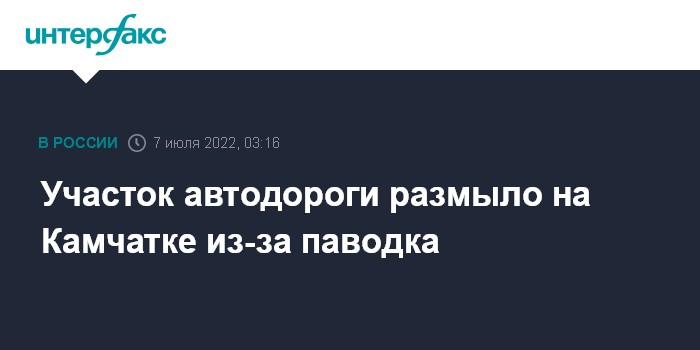 Москва. 7 июля. INTERFAX.RU - Дорогу размыло в Усть-Камчатском районе между селами Майское и Козыревск, движение автотранспорта ограничено, сообщает пресс-служба ГУ МЧС Камчатского края в четверг.