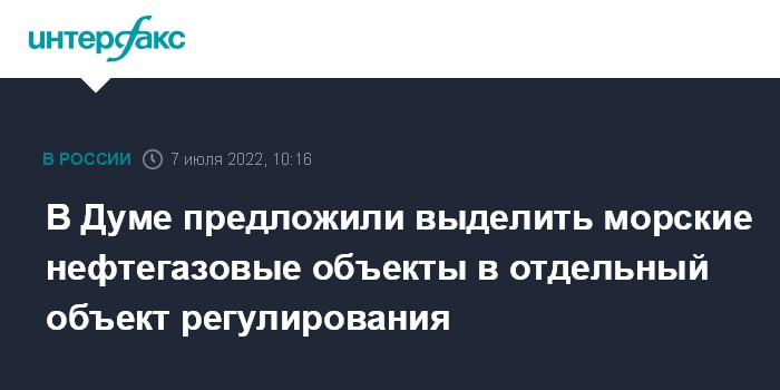 Ранее сообщалось, что Минэнерго надеется осенью 2022 года внести в Госдуму доработанный законопроект "О морских нефтегазовых объектах", над которым отрасль работает с 2018 года.