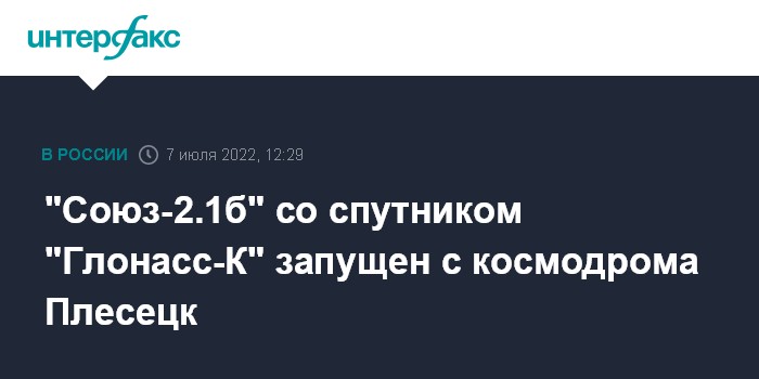 "В четверг, 7 июля в 12:18 по московскому времени с Государственного испытательного космодрома министерства обороны РФ (космодром Плесецк) в Архангельской области боевым расчетом Космических войск Воздушно-космических сил проведен успешный пуск ракеты-носителя среднего класса "Союз-2.1б" с навигационным космическим аппаратом "Глонасс-К", - отметили в военном ведомстве.