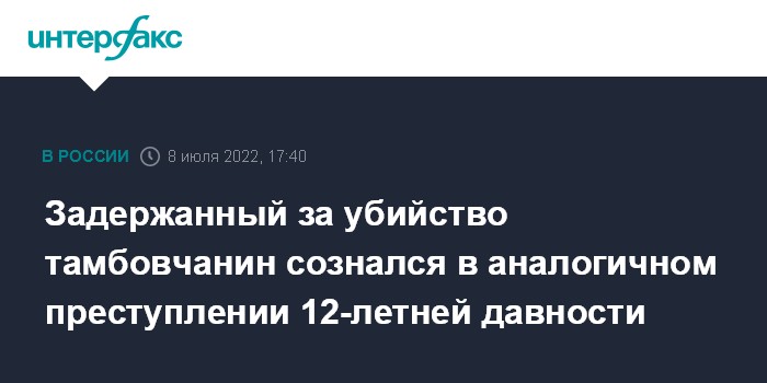 Задержанный за убийство тамбовчанин сознался в аналогичном преступлении 12-летней давности
