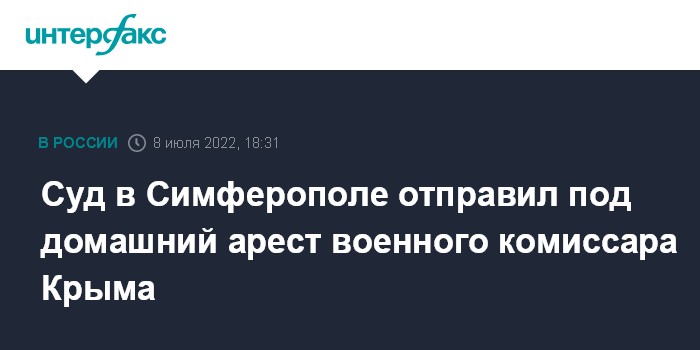 Москва. 8 июля. INTERFAX.RU - Гарнизонный военный суд в Симферополе избрал меру пресечения в виде домашнего ареста для военного комиссара Крыма, подозреваемого в превышении полномочий и взяточничестве, сообщил "Интерфаксу" в пятницу информированный источник.