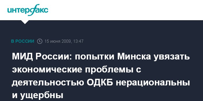 МИД России: попытки Минска увязать экономические проблемы с деятельностью ОДКБ нерациональны и ущербны
