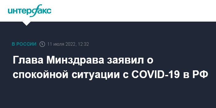 Глава Минздрава заявил о спокойной ситуации с COVID-19 в РФ