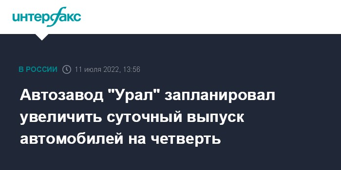 Москва. 11 июля. INTERFAX.RU - АО "Автомобильный завод "Урал" (Миасс, Челябинская область) планирует увеличить суточный объем производства автомобилей до 45 единиц, сообщила пресс-служба предприятия.