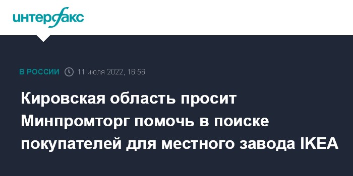 Кировская область просит Минпромторг помочь в поиске покупателей для местного завода IKEA