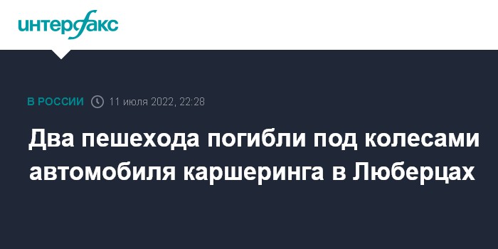 Москва. 11 июля. INTERFAX.RU - В подмосковных Люберцах скончались от травм два пешехода, пострадавших в ДТП с участием автомобиля каршеринга.