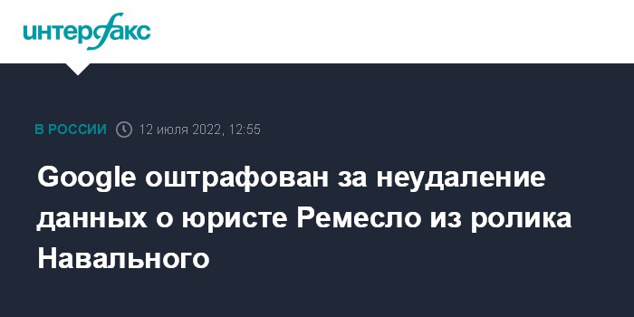 Google оштрафован за неудаление данных о юристе Ремесло из ролика Навального