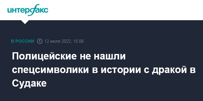 Москва. 12 июля. INTERFAX.RU - Проверка не нашла подтверждения слов о том, что недавнее избиение военного в Судаке было связано с какой-либо спецсимволикой, сообщила пресс-служба управления МВД по Крыму.