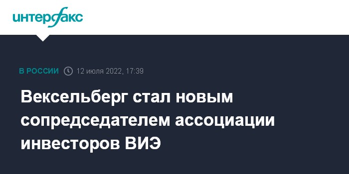 Как сообщила Ассоциация развития возобновляемой энергетики (АРВЭ) в своем канале в Telegram, "Виктор Вексельберг стал новым сопредседателем АРВЭ, сменив добровольно покинувшего пост Анатолия Чубайса".