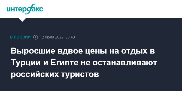 "Отели что в Египте, что в Турции после двух лет COVID-19 пытаются компенсировать потери, и в результате мы получаем повышение цены. Что на спросе никак не отражается, люди готовы ехать за такие деньги", - добавила представитель АТОР.