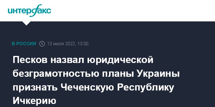 Песков назвал юридической безграмотностью планы Украины признать Чеченскую Республику Ичкерию