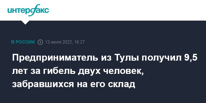 Предприниматель из Тулы получил 9,5 лет за гибель двух человек, забравшихся на его склад