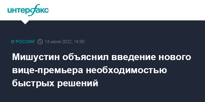 Мишустин объяснил введение нового вице-премьера необходимостью быстрых решений