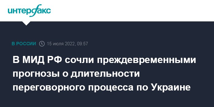 В МИД РФ сочли преждевременными прогнозы о длительности переговорного процесса по Украине