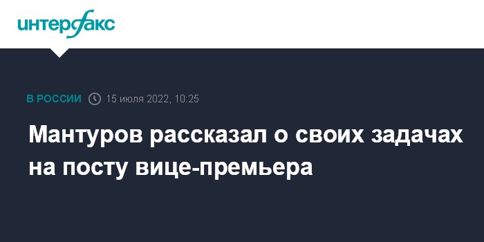 Москва. 15 июля. INTERFAX.RU - Достижение технологического суверенитета по ряду направлений промышленности является одной из основных целей работы на посту вице-премьера, заявил претендующий на эту должность в правительстве РФ министр промышленности и торговли Денис Мантуров.