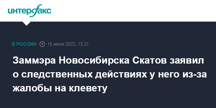 "Ситуация следующая - на меня поступила жалоба от депутата Госдумы Дмитрия Савельева по подозрению в клевете. Я не очень понимаю еще, о чем идет речь, но я расцениваю это как политическое давление с целью повлиять на мэрию", - заявил Скатов в видео, опубликованном в телеграм-канале мэрии Новосибирска для оперативной работы со СМИ.
