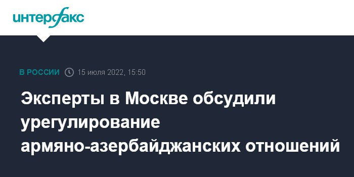 Москва. 15 июля. INTERFAX.RU - Эксперты из Армении, Азербайджана и России встретились в Москве для обсуждения комплекса вопросов армяно-азербайджанского урегулирования.