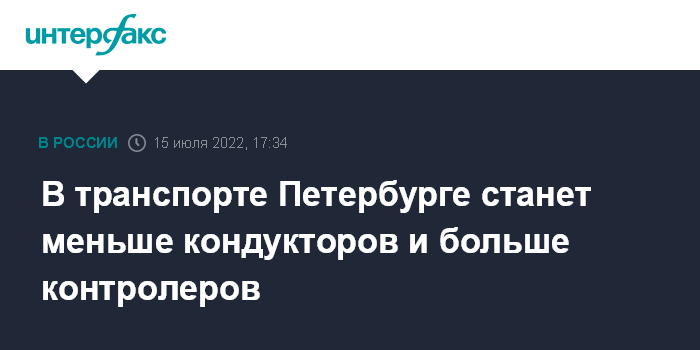 Москва. 15 июля. INTERFAX.RU - В Петербурге в рамках реформы наземного транспорта сокращают число кондукторов, их оставят на маршрутах, где их присутствие экономически оправдано. При этом контролеров в городе стало уже 300 и в дальнейшем их число увеличат до 600, сообщил врио председателя городского комитета по транспорту Валентин Енокаев.
