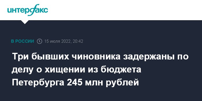 Три бывших чиновника задержаны по делу о хищении из бюджета Петербурга 245 млн рублей