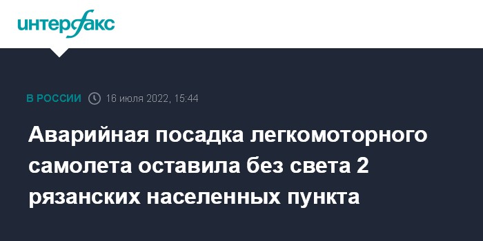 Аварийная посадка легкомоторного самолета оставила без света 2 рязанских населенных пункта