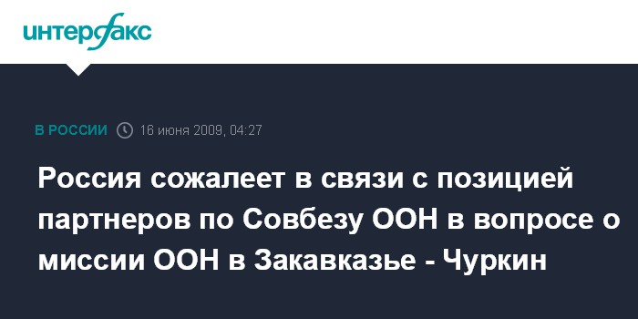 Россия сожалеет в связи с позицией партнеров по Совбезу ООН в вопросе о миссии ООН в Закавказье - Чуркин