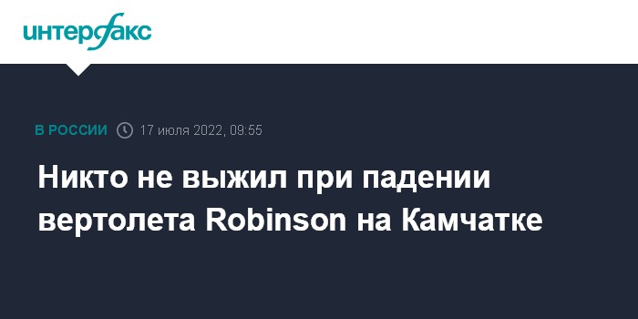 Никто не выжил при падении вертолета Robinson на Камчатке