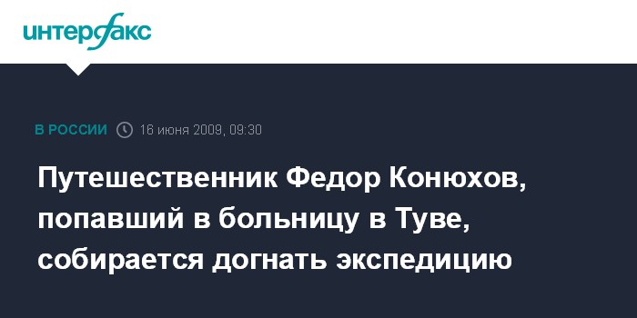 Москва. 16 июня. INTERFAX.RU - Известный путешественник Федор Конюхов, вынужденный прервать экспедицию "По следам Шелкового пути" из-за своей госпитализации после укуса клеща, намерен в ближайшее время вернуться на маршрут.
