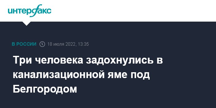 Москва. 18 июля. INTERFAX.RU - Белгородские следователи устанавливают обстоятельства гибели трех человек в канализационной яме частного домовладения. Об этом сообщили "Интерфаксу" в пресс-службе следственного управления СКР по Белгородской области в понедельник.