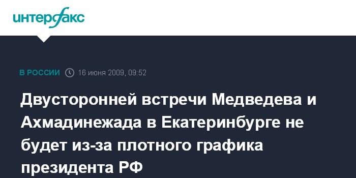 Двусторонней встречи Медведева и Ахмадинежада в Екатеринбурге не будет из-за плотного графика президента РФ