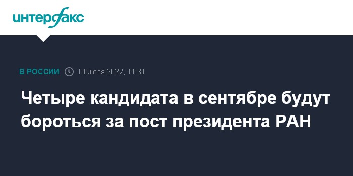 Четыре кандидата в сентябре будут бороться за пост президента РАН