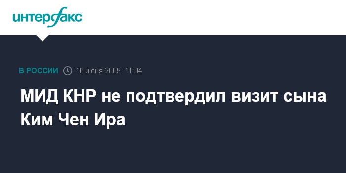 Москва. 16 июня. INTERFAX.RU - МИД КНР не располагает информацией о том, что младший сын северокорейского лидера Ким Чен Ира Ким Чен Ун якобы посещал Китай и встречался с китайским руководителем Ху Цзиньтао.